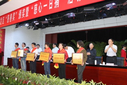 濱州傳媒網(wǎng)訊(記者郭瑩 通訊員李華)2011年5月26日上午,開發(fā)區(qū)隆重舉行2010年度“慈善獎(jiǎng)”頒獎(jiǎng)和2011年度“慈心一日捐”活動(dòng)動(dòng)員大會(huì)。會(huì)議由開發(fā)區(qū)黨工委委員、主任助理、公安分局局長張愛國同志主持,黨工委書記、管委會(huì)主任姚和民同志到會(huì)并作重要講話,會(huì)議表彰了2010年度為慈善事業(yè)做出突出貢獻(xiàn)的單位和個(gè)人,區(qū)黨工委委員、管委會(huì)副主任、慈善總會(huì)會(huì)長馬景澤同志接收了7家企業(yè)的捐贈(zèng),其中,福豪鋼材市場管理有限公司認(rèn)捐基金200萬元,海得曲軸有限責(zé)任公司認(rèn)捐基金200萬元,華晨新型建材有限公司認(rèn)捐基金100萬元,中大兆華牧業(yè)科技有限公司認(rèn)捐基金100萬元,金河房地產(chǎn)開發(fā)有限公司認(rèn)捐基金100萬元,